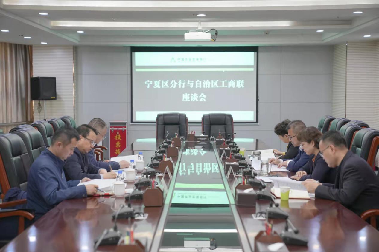 會前,自治區工商聯主席何曉勇率自治區工商聯黨組成員、副主席尤文濤和相關業務處室干部到中國農業發展銀行寧夏區分行調研座談。區分行黨委書記、行長張艷娟,區分行黨委委員、副行長李宗育及相關處室負責人參加座談。